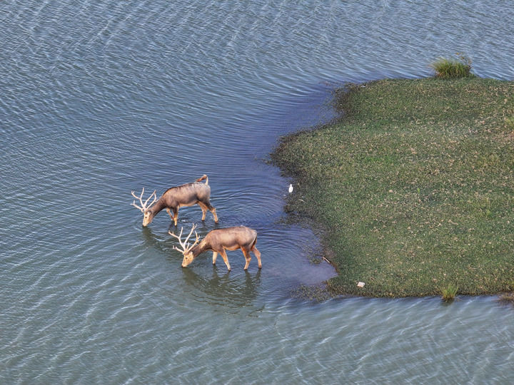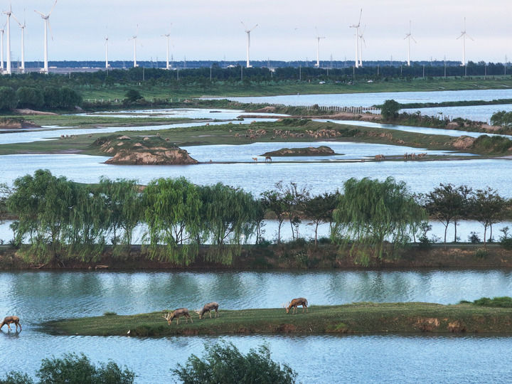 根据河道疏通形成的14个小岛,马连义分别设计萤火虫岛、麋鹿行宫、玄鹤窝棚等特色主题,甚至辟出一个岛专门养牙獐——麇鹿喜水域,牙獐栖草丛,二者生态位互补,期待重现古籍记载的“麋鹿自在群,獐獾不相忌”和谐场景。