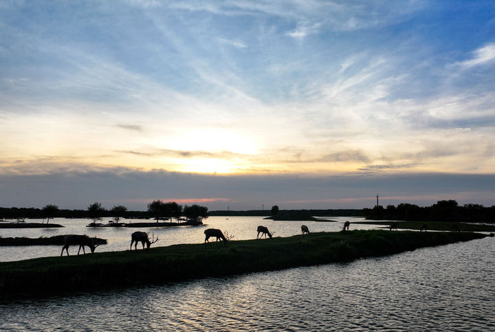 夏末傍晚的野鹿荡,风吹草舞下鸥鹭翔集,水波晃动着一群麋鹿的倒影,满目皆是生机盎然的绿,等这样的绿色一直弥漫向秋天,巨大的滩涂又会被火红的盐蒿草覆盖。当人们惊叹于野鹿荡的原生态之美,难以想象16年前这里不过是大型水利工程的填土预留地,遍地砂石、泵泥和垃圾。