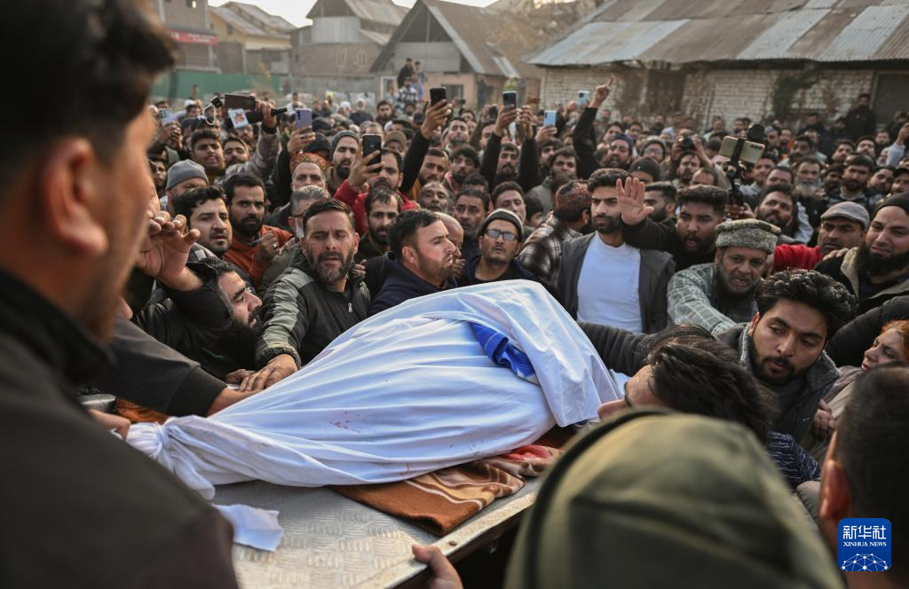 11月15日,在印控克什米尔地区斯利那加,人们哀悼爆炸事件中的遇难者。新华社发(贾韦德·达尔摄)