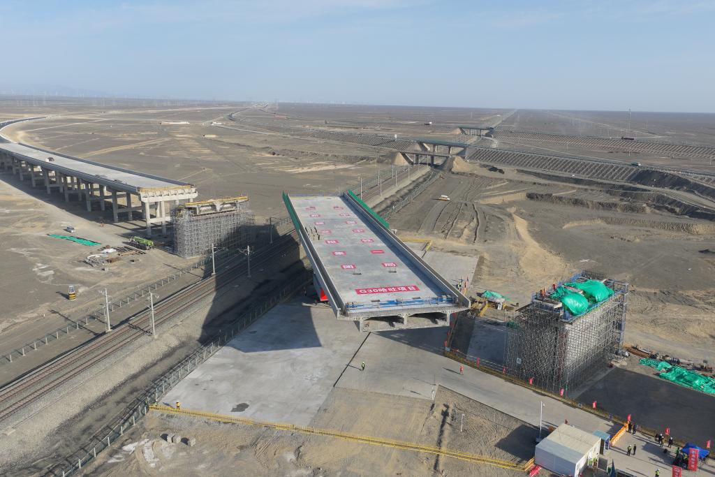 G30连霍高速哈吐段改扩建工程上跨兰新铁路1号大桥成功转体-新华网