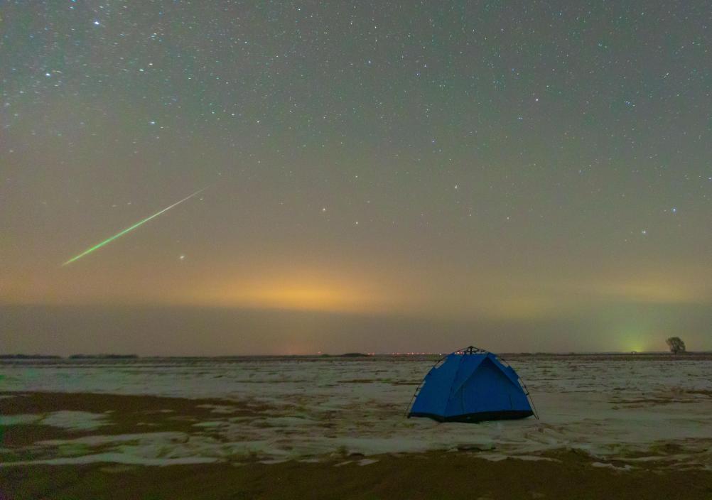 12月13日在黑龙江省桦川县拍摄的双子座流星雨。新华社发(朱宗强摄)