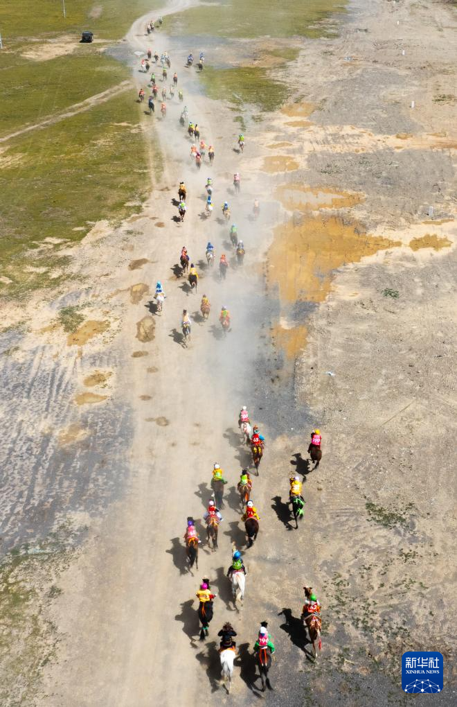 这是9月6日拍摄的恰青赛马节比赛现场(无人机照片)。