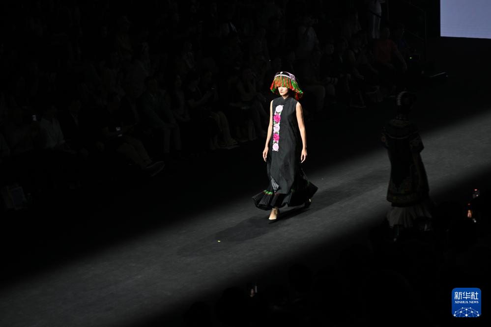 9月8日,模特在中国国际时装周·楚雄时装周彝绣非遗创新专场上展示时装。