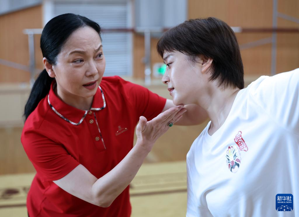 10月12日,二度“梅花奖”获得者、全国三八红旗手陈美兰(左)在指导演员排练剧目。