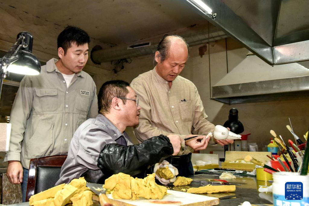 10月27日,郑东平在位于铜陵市的工作室内修蜡模。
