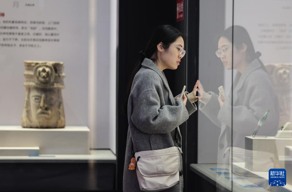 11月15日,观众在河北博物院参观“丛林圣殿——墨西哥玛雅文明展”。