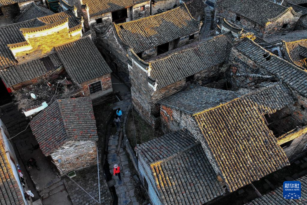 11月24日,人们在郴州汝城县金山村一处古祠堂内(无人机照片)。