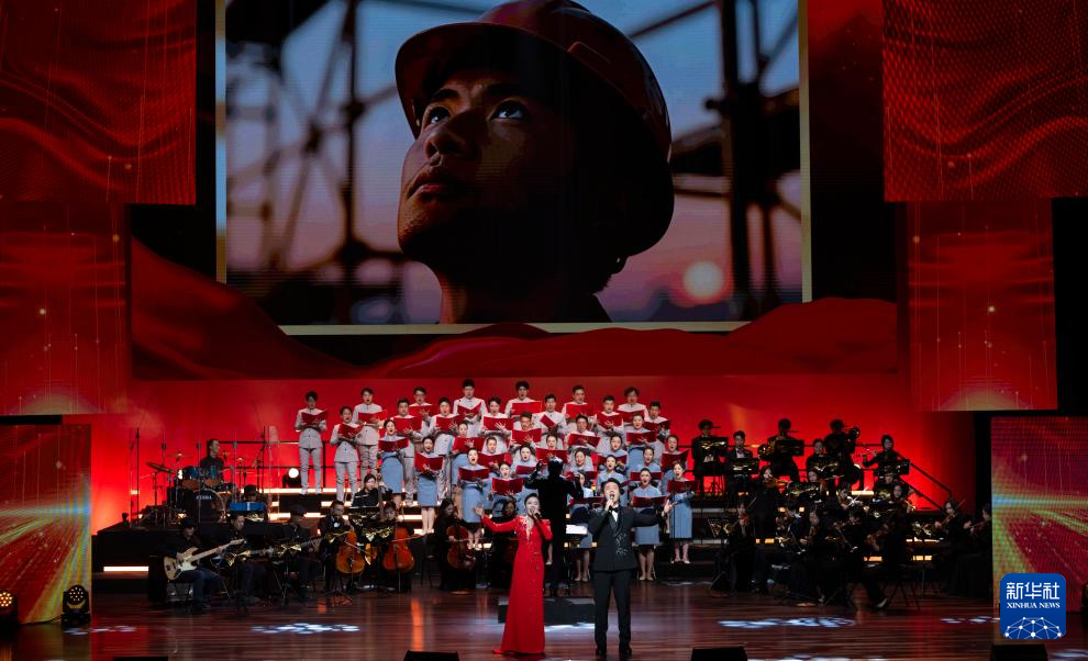 12月16日,在北京二七剧场举办的“中国梦·劳动美”2026新年音乐会上,演员在大合唱《亿万职工心向党》中歌唱。