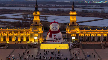 12月17日,游客在哈尔滨冰雪大世界园区游玩。