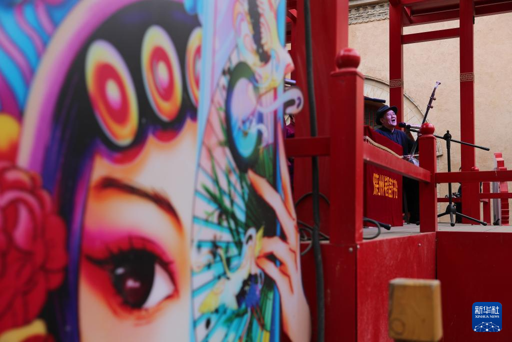 12月21日,游客在河南省三门峡市陕州区张汴乡北营村地坑院欣赏陕州锣鼓书表演。