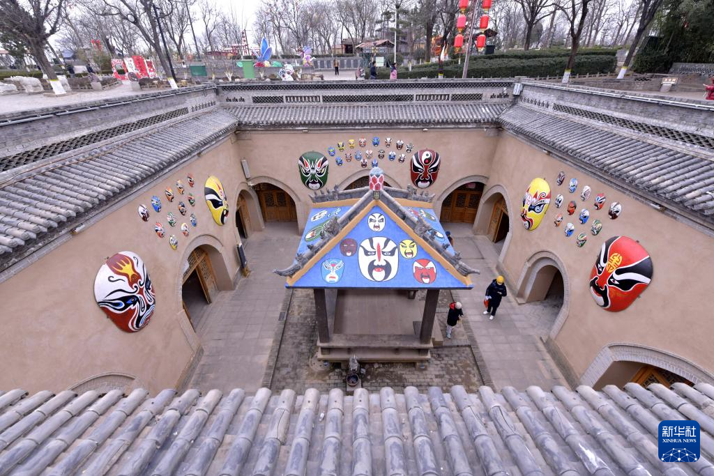 12月21日,游客在河南省三门峡市陕州区张汴乡北营村地坑院欣赏社火表演。