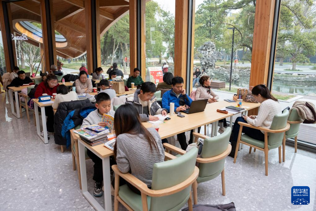 1月18日,市民在苏州市工人文化宫读书休闲。