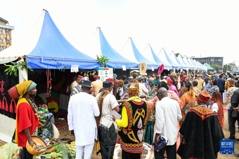 1月24日,人们在喀麦隆首都雅温得举行的世界非洲和非洲裔文化日庆祝活动上参观展台。