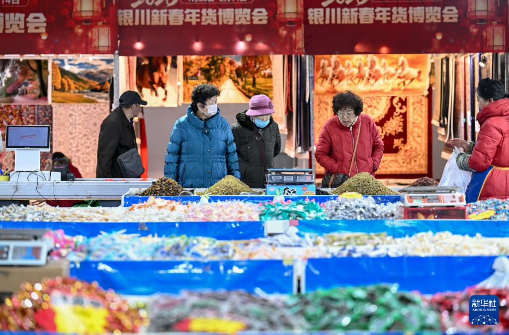 2月5日,在2026银川新春年货博览会现场,市民选购干果特产。