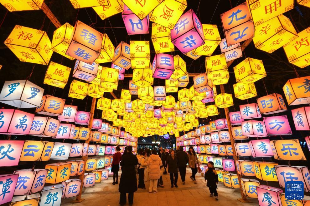 2月11日,市民在甘肃省定西市安定区新时代广场观赏花灯。