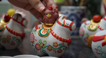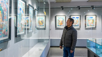 2月24日,人们在山东古建筑博物馆参观万字会旧址济南母院的琉璃影壁。