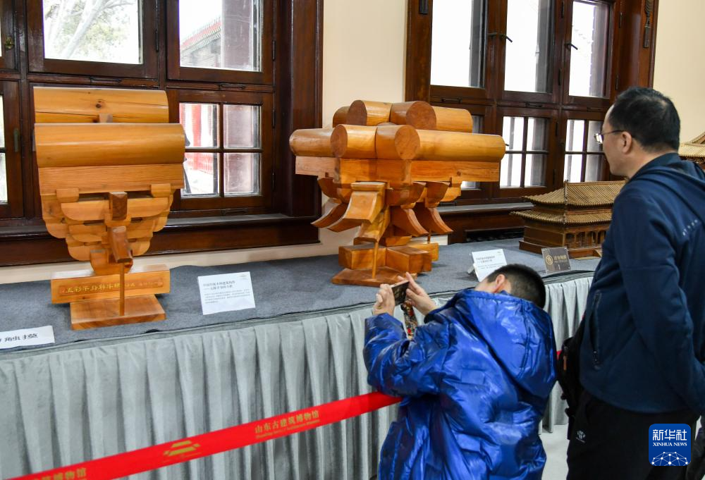 2月24日,人们在山东古建筑博物馆参观中国古代建筑模型展。