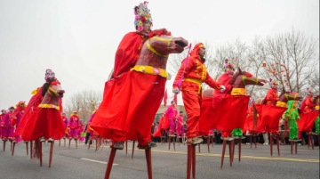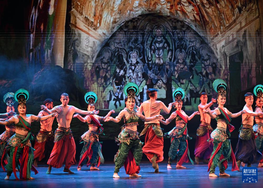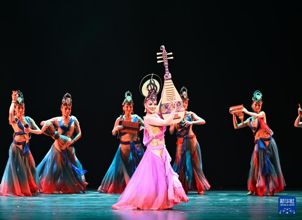 2月28日,演员在大型乐舞诗《杏花之约·丝路龟兹》中表演。