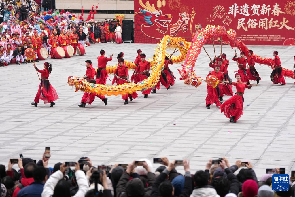 2月28日,中国工艺美术馆(中国非物质文化遗产馆)和中国共产党历史展览馆共同举办“非遗贺新春 民俗闹红火”活动,来自北京、陕西、山西、浙江、内蒙古等8个省区市的民俗展演团队,为观众奉上曾庄大鼓、麒麟舞、寿阳高跷竹马戏、蒙古族马头琴音乐等14项民俗展演。