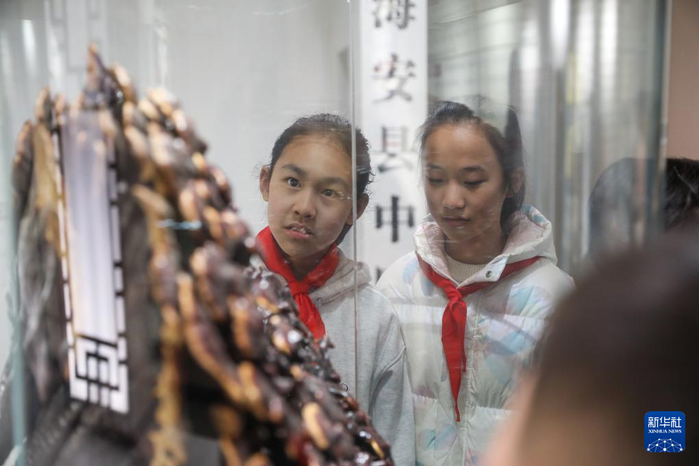 3月15日,江苏省海安市南屏小学学生走进市中医院中医药博物馆,在中药师带领下辨识中药材、观看中药丸制作展示,体验中医药文化。