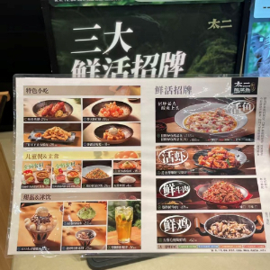 据了解,太二酸菜鱼母公司九毛九集团旗下的餐饮品牌,包括“九毛九山西菜”“怂火锅厂”以及该集团最新推出的潮汕鲜烤品牌“潮那边”,均已推行透明菜单制度。