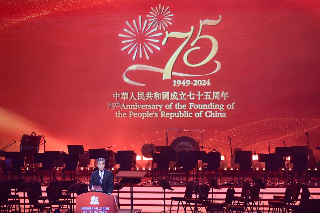 新华社香港10月2日电(记者孟佳)香港同胞庆祝中华人民共和国成立75周年筹备委员会,2日晚在香港体育馆举办“爱国爱港 耀我中华”大型文艺晚会。