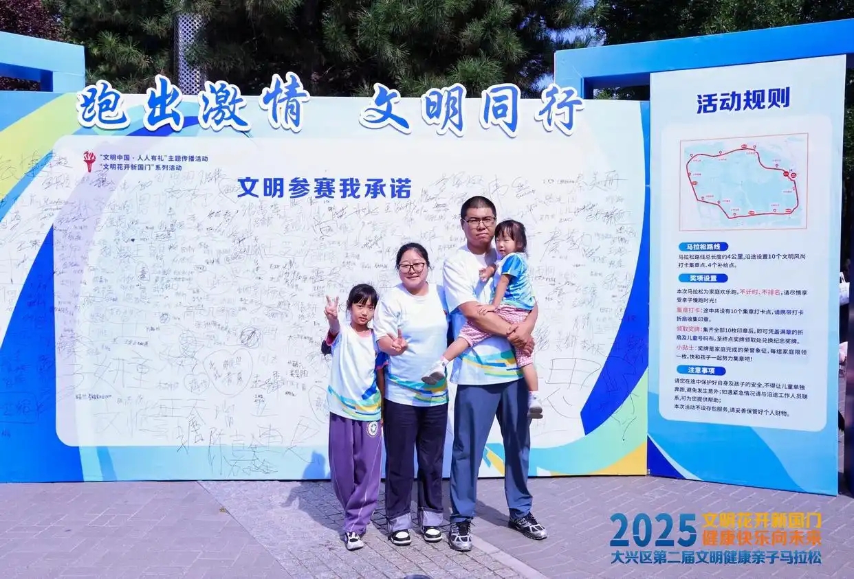 一边跑步一边文明打卡,大兴第二届文明健康亲子马拉松活力开跑
