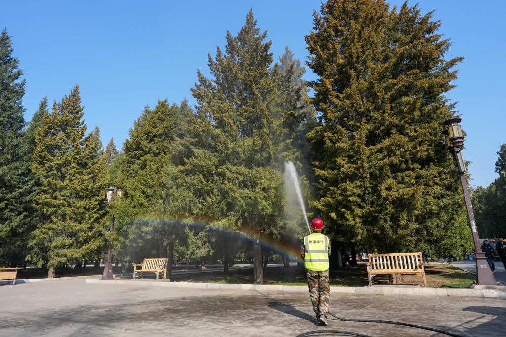 从个人到社会,各方都在积极应对。北京市已在2025年秋冬季提前修剪圆柏等致敏植物的雄球花枝条,并在近期使用花粉固定剂对树冠喷淋,加速花粉沉降;成都等南方城市也已启动花粉飞絮综合治理工作,在开展树木规范修剪的基础上,采用高压喷淋等方式,减少花粉飞絮的空中飘散量。
