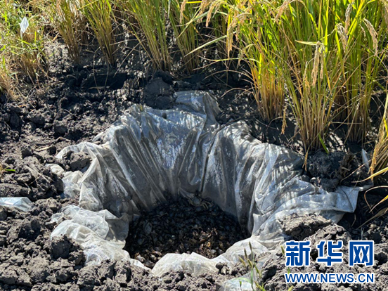图为镇赉县稻田里养蟹实现“稻蟹共生”。新华网记者 刘杨 摄