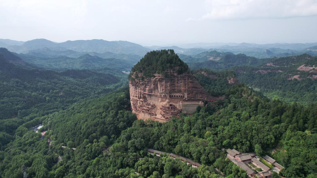 位于甘肃省天水市的麦积山石窟始凿于距今约1600年的后秦,因其形似麦垛而得名,是“中国四大石窟”之一。