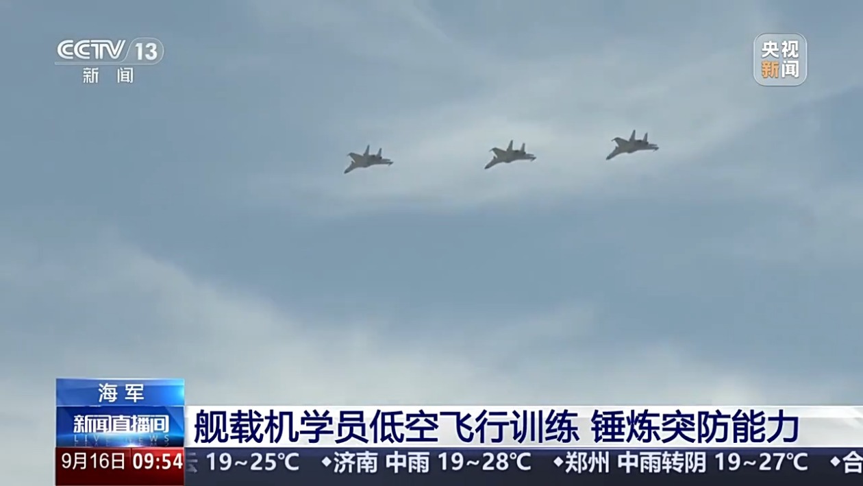 接到指令后,数架歼-15舰载战斗机呼啸升空,组成战术编队奔赴预定训练空域,展开低空山谷飞行训练。刚抵达预定空域,“敌”情来袭,编队立即降低飞行高度,不断变换战术队形,并转入山谷,规避“敌”防空武器威胁。数分钟后,战机高速穿过山谷,完成超低空突防,并顺利摧毁“敌”防空阵地,为后续编队建立安全进攻通道。