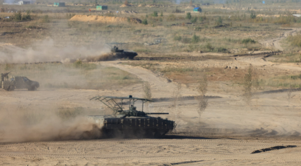 9月12日至16日期间,俄罗斯与白俄罗斯联合举行了“西方-2025”战略军事演习,演习在俄白境内41个陆海训练场及波罗的海、巴伦支海水域展开,参演兵力包括10万名军人、1万套武器装备及200余艘舰艇。(总台记者 张誉耀)