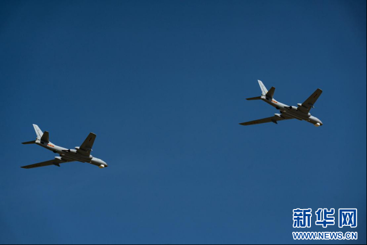 9月20日,轰-6双机编队通场展示。新华网 丁梓朔 摄