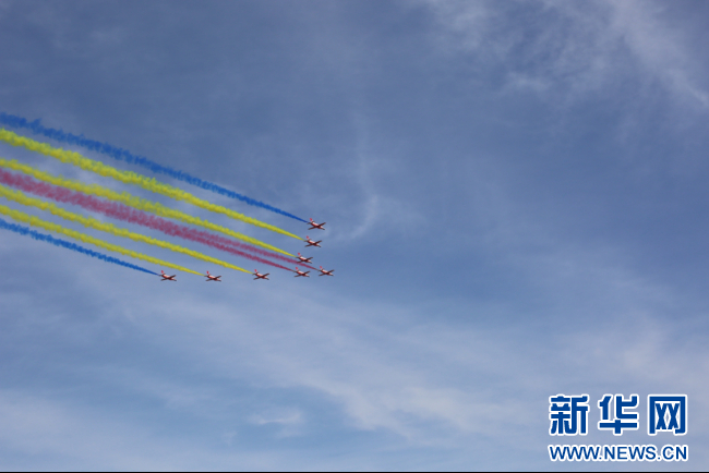 9月20日,空军八一飞行表演队进行飞行表演。新华网 丁梓朔 摄