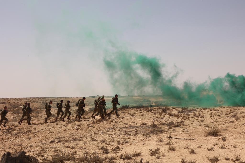 9月21日,新招募的以军士兵在以色列南部一处地点参加训练。