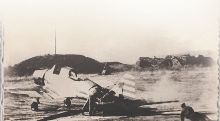 东北老航校建校后,国民党军队一天也没有停止过对它的轰炸、袭扰和破坏。1947年8月的一天,飞行员吕黎平驾驶战机,准备下滑着陆。突然,8架敌机从机场东北方向袭来,密集的炮火击中我机尾部,飞机当即起火。
