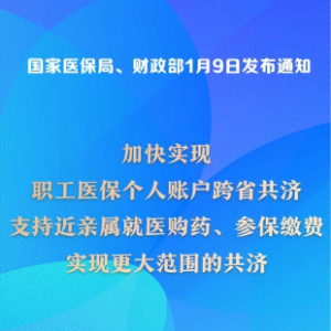 国家医保局会同财政部1月9日发布《关于做好职工基本医疗保险个人账户跨省共济工作的通知》,进一步优化个人账户共济政策,打破地域限制,强化家庭互助功能,将职工基本医疗保险个人账户共济范围从省内拓展至全国。