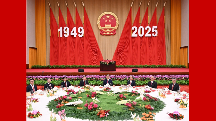 习近平等党和国家领导人出席庆祝中华人民共和国成立76周年招待会