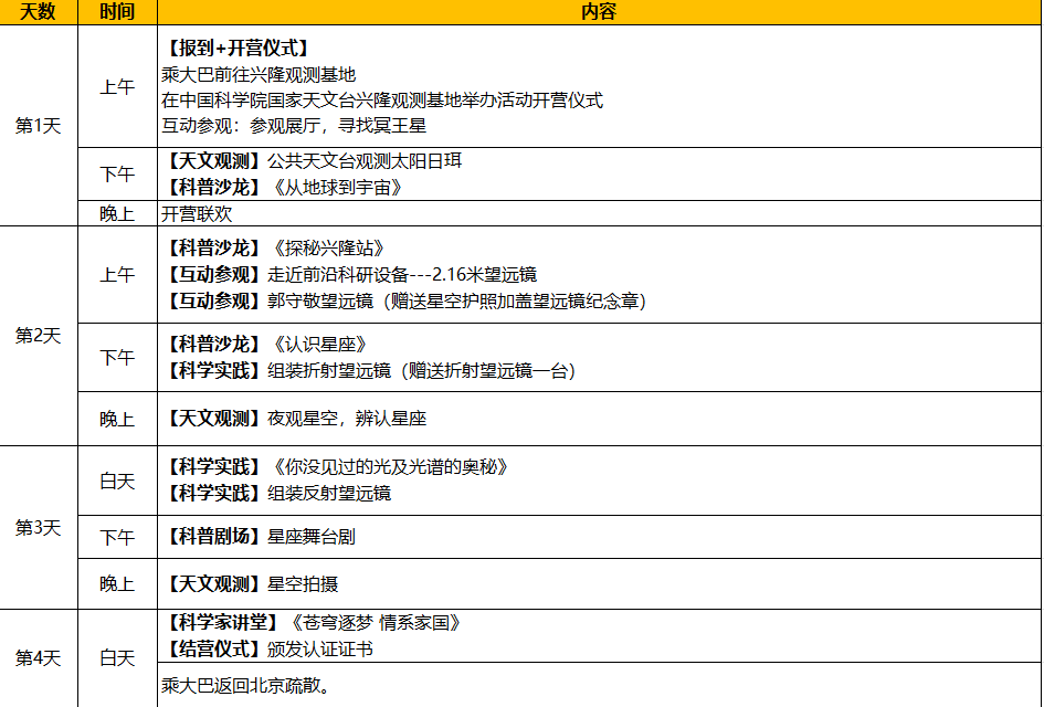 由国家天文台兴隆观测基地提供专业天文设备支持,在驻站科学家的指导下,将理论与实践结合,带学生们了解天体物理知识,认知天文技术应用成果,亲身体验天文观测。实践活动将六大自然学科融汇贯通,领略中国古代天文智慧,体会科学家精神,带学生沉浸式感受苍穹的艺术之美,亲身体验天文学两项“中国第一”大科学装置国之重器的魅力。