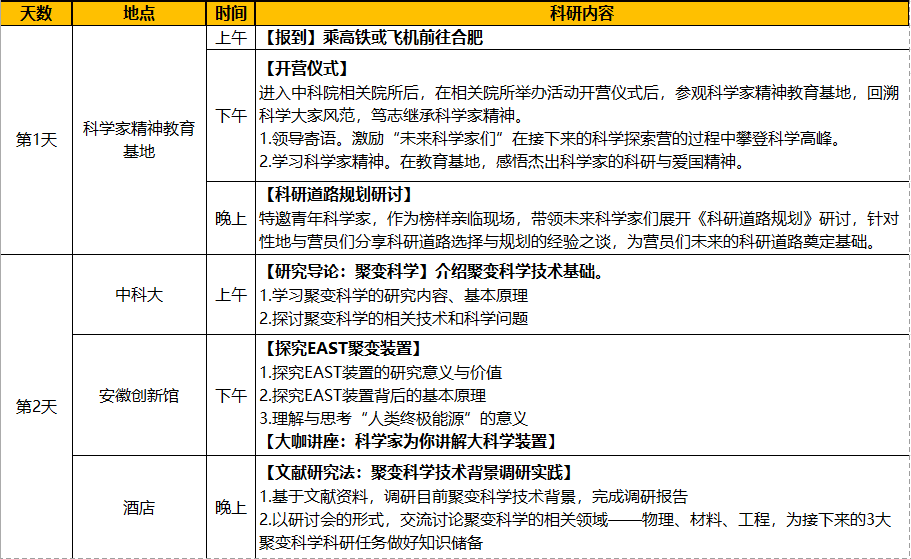 走进科学岛,一次性接触六大国家顶尖科学成果;特邀国家大科学装置科学家全程带领学生完成三大科研实验,撰写专业实验报告;分享青年科学家科研道路选择与规划,感受榜样力量;全面了解人造太阳研究的意义和价值,思考“人类终级能源”的意义;掌握文献研究的方法,完成科学实践调研报告;走进国家重点实验室,掌握科研规范,深度参与实验设计,完成相关科研实验。