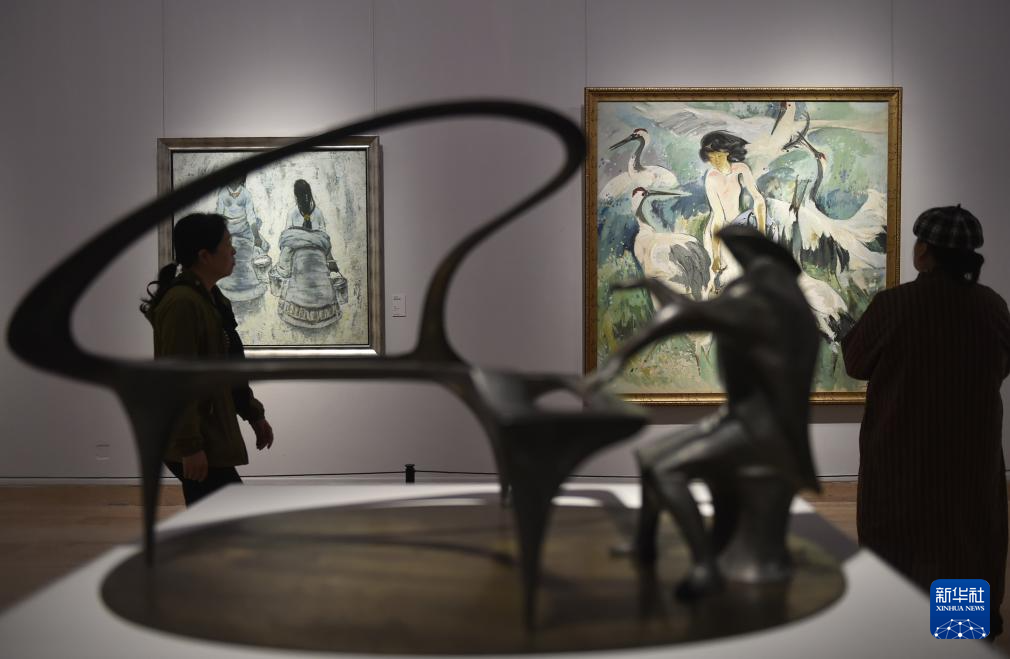 9月27日,观众在中国美术馆参观雕塑作品《苦旅共甘泉》。