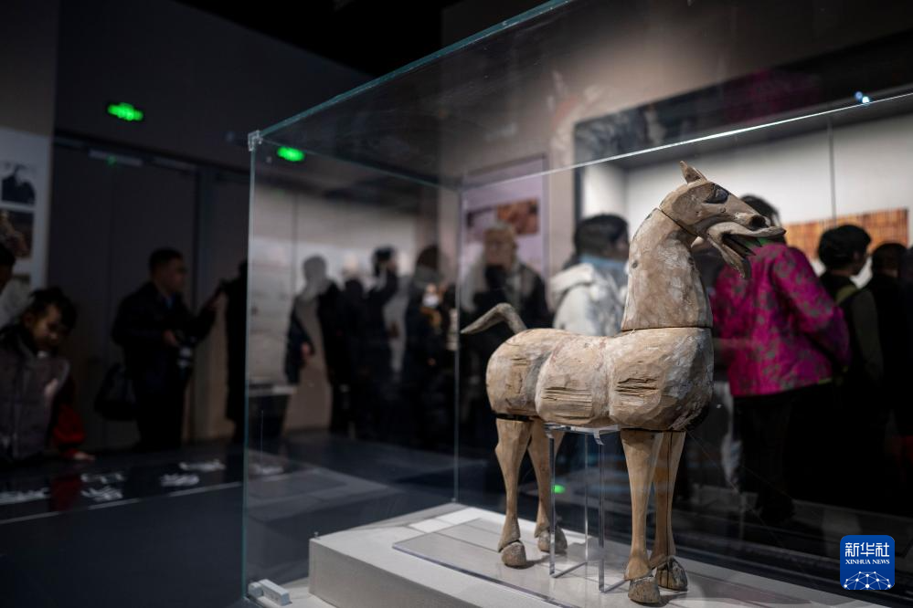 12月28日拍摄的展出的汉代木马。