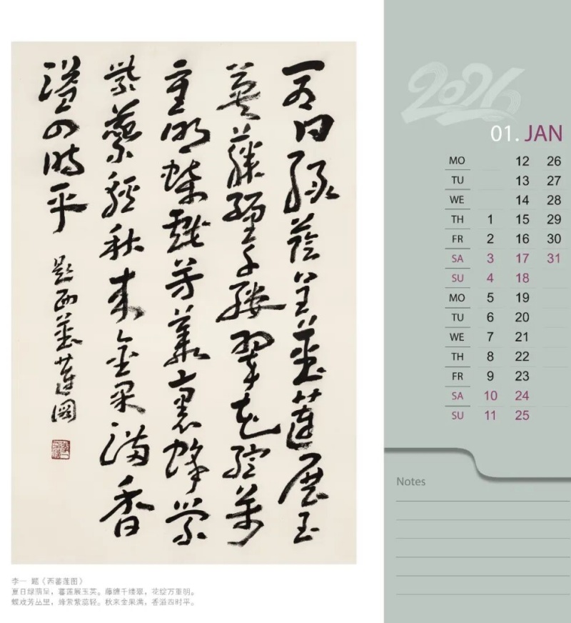 【编者按】:2026年1月1日元旦,是一年新的开始,让我们来欣赏李一、江继兰诗书画台历作品,一起祈福纳祥,祝福新年的到来。