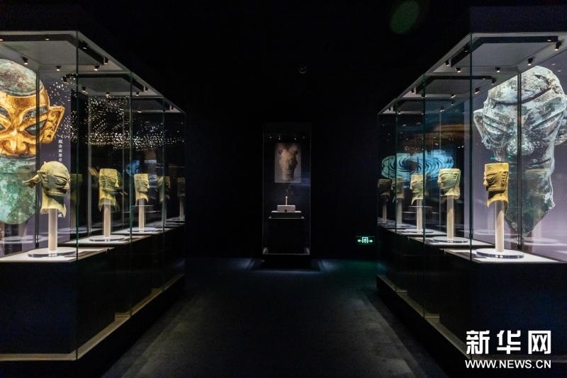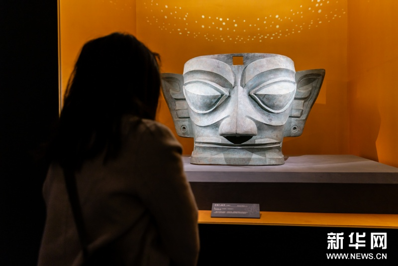据介绍,本次展览中,包括青铜立人、兽首饰玉璋等37件(套)来自成都金沙遗址博物馆的文物,自其开馆以来从未外展。三星堆博物馆藏戴冠纵目面具与中国国家博物馆藏戴冠纵目面具在本次展览中并列展出,这是自1986年三星堆祭祀坑发掘以来,两件标志性青铜面具首次同台亮相。太阳神鸟金饰将于“文化和自然遗产日”20周年之际再次在国博展出。