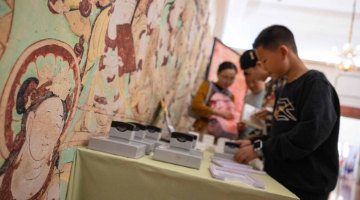 2月24日,人们在山东古建筑博物馆参观万字会旧址济南母院的琉璃影壁。
