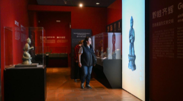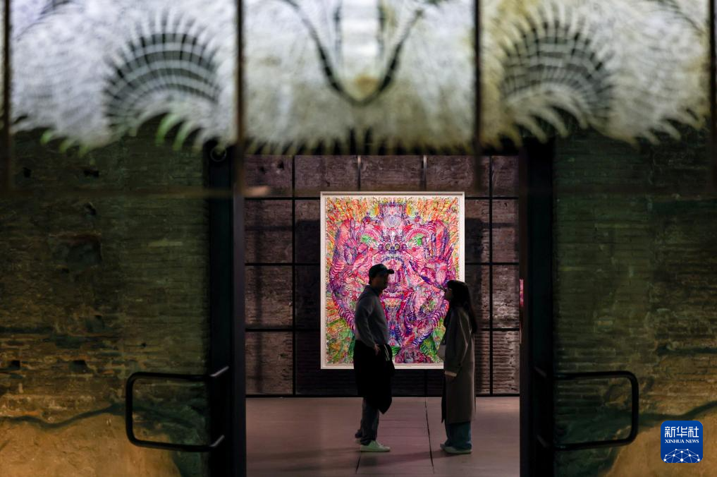 4月1日,观众在意大利罗马国家博物馆戴克里先浴场观看特别展览“邬建安:变形记”的展品。