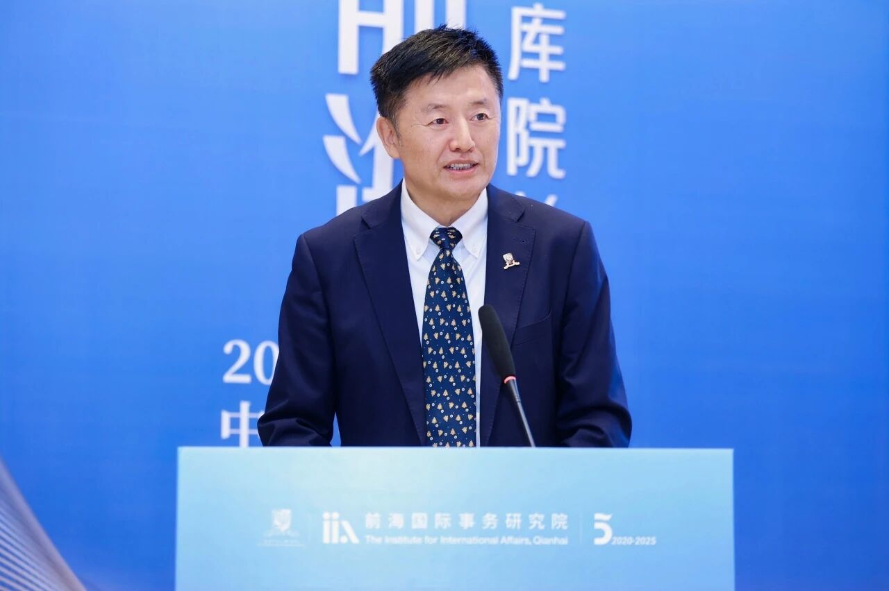 香港中文大学(深圳)党委书记、协理副校长李学金代表大学致辞。他首先对前海国际事务研究院成立五周年表示热烈祝贺,并高度肯定了研究院在过去五年中,作为校地深度合作的重要成果,已成长为服务国家战略决策的国家级战略力量,是深圳乃至全国智库建设的一面旗帜。