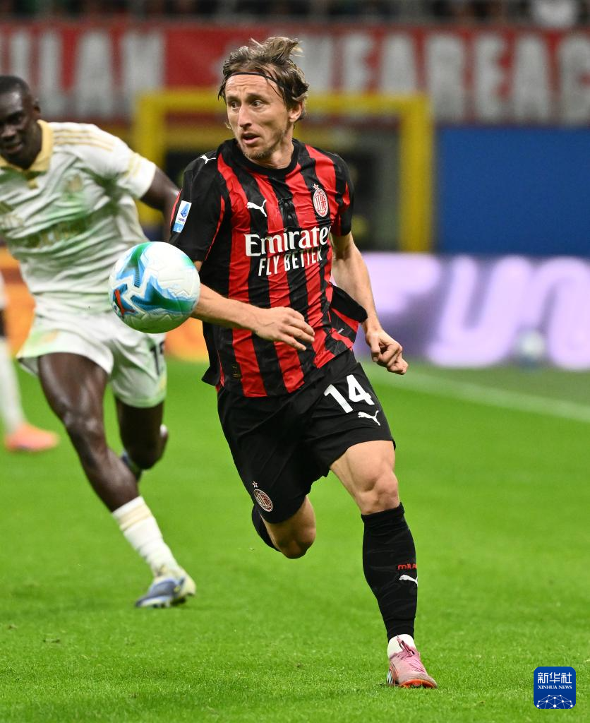 10月24日,AC米兰队球员莫德里奇(右)在比赛中突破。
