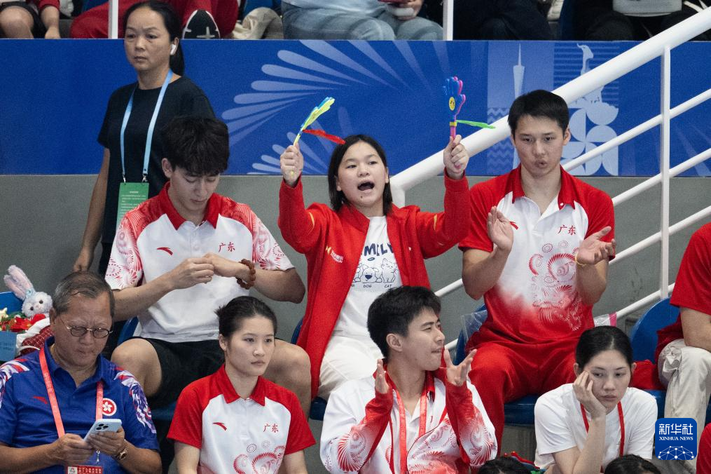 11月10日,广东队选手全红婵(后排中)在场边加油助威。