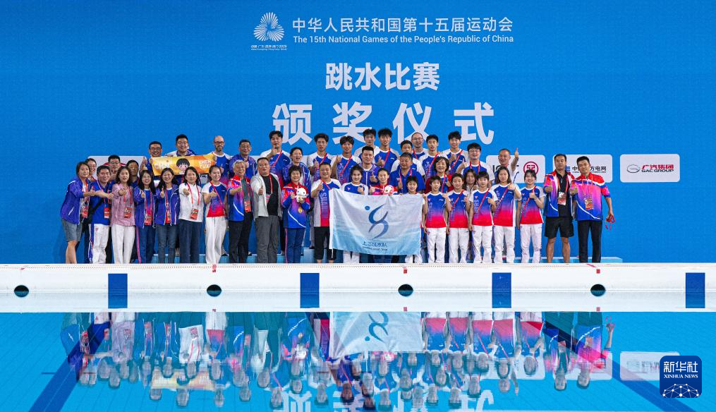 11月10日,上海跳水队成员在赛后合影。